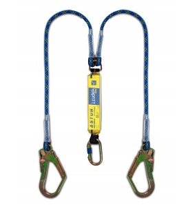 Podwójna lonża z amortyzatorem energii Irudek Astun Y 363 180HSS do pracy na wysokości. Absorber skutecznie redukuje siłę uderzenia poniżej 6 kN. Konstrukcja z wytrzymałej taśmy poliestrowej oraz półstatycznych lin 12 mm. W zestawie znajdują się stalowe złącza zatrzaskowe. Zapewnia pełną zgodność ze standardami przemysłowymi EN 353 oraz EN 362:2005.