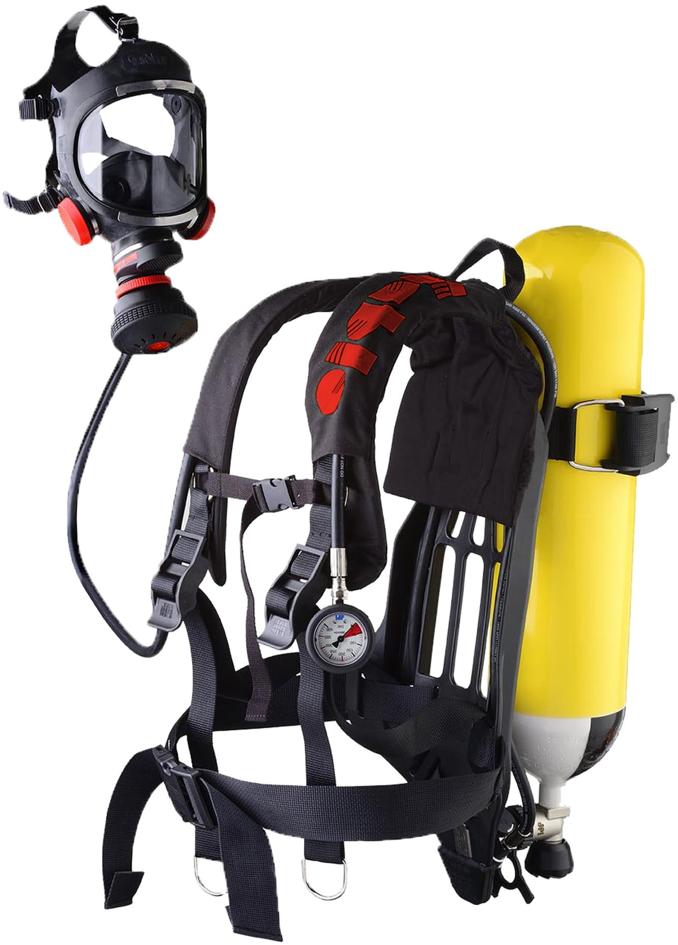 - Dostarcza oddychalne powietrze z cylindra z sprężonym powietrzem