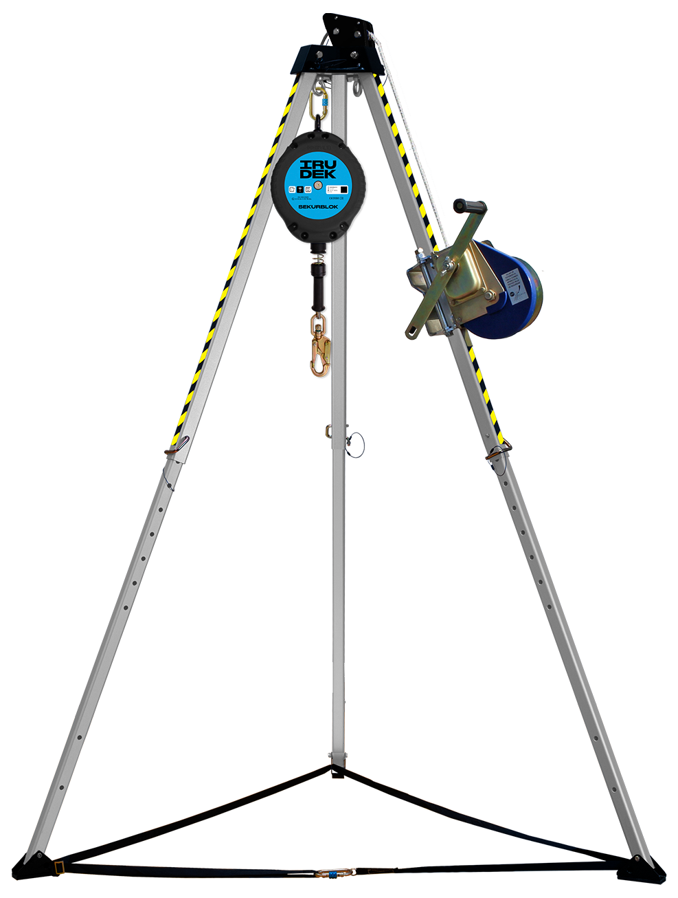 Ważne: Zgodnie z normami, wciągarka ratownicza (EN 1496) musi być używana w połączeniu z niezależnym systemem chroniącym przed upadkiem z wysokości. Dołączone do zestawu urządzenie samohamowne SEKURBLOK (EN 360) w pełni realizuje ten wymóg, tworząc kompletny i bezpieczny system. Użytkowanie sprzętu wymaga odpowiedniego przeszkolenia.