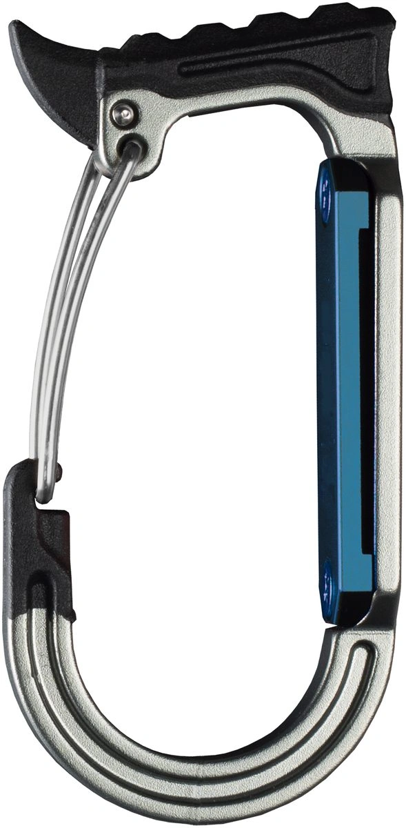 Model wykonano z aluminium, dzięki czemu łączy niską masę z odpowiednią trwałością do codziennego zastosowania. Uchwyt montowany jest do taśm uprzęży za pomocą przykręcanego klipsa, a zastosowany mechanizm spustowy z osłoną ogranicza ryzyko przypadkowego zahaczenia.