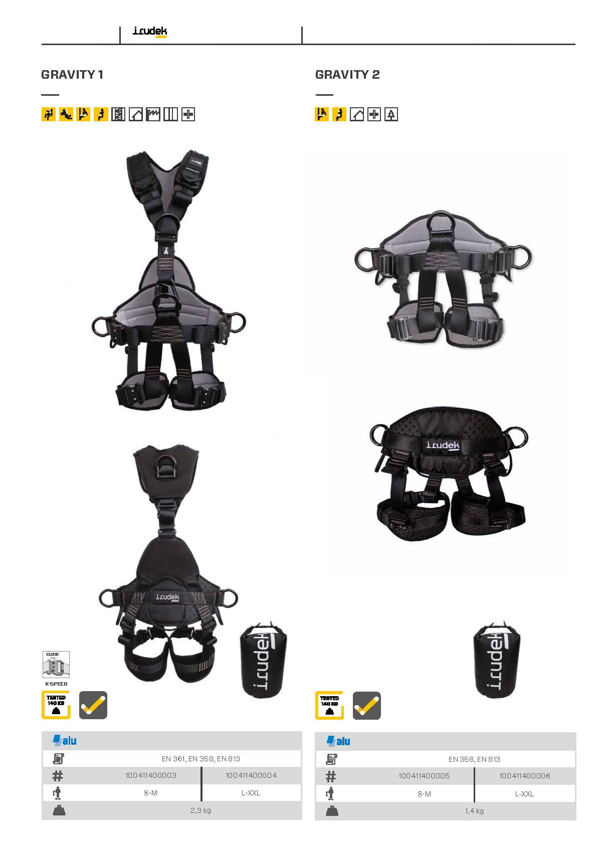 Szelki bezpieczeństwa - uprząż GRAVITY PLUS 1 - rozmiary S-M i L-XXL
