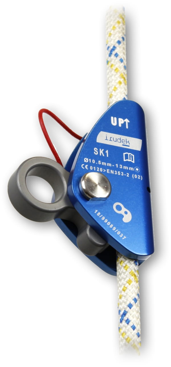 Aluminiowe urządzenie samozaciskowe ślizgowe sk1 firmy Irudek dostarczane w zamkniętym zestawie z dedykowaną, wytrzymałą liną półstatyczną o długości 40 m i dedykowanym karabińczykiem. Chwyt linowy sunie gładko, odgrywając podstawową rolę układu asekuracyjnego. Model wpina się wyłącznie w terminalny fragment linii, uniemożliwiając samoczynne wyskoczenie urządzenia (EN 353-2).